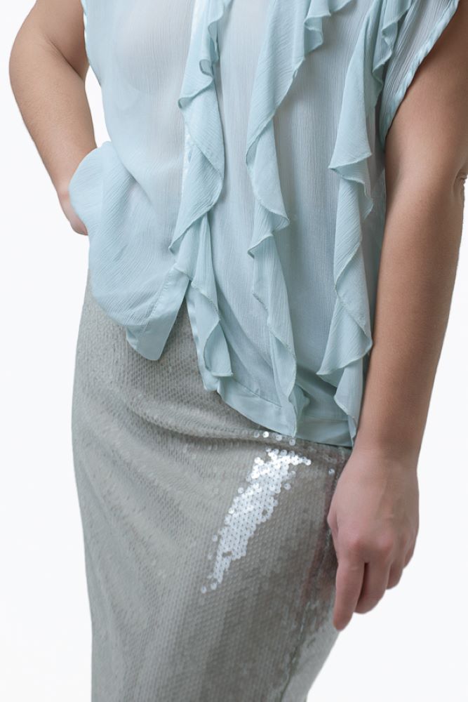 Οι ρομαντικοί βολάν στο μπροστινό μέρος προσθέτουν κίνηση και θηλυκότητα, δημιουργώντας μια elegant αισθητική χωρίς υπερβολές. Το V ντεκολτέ με το κουμπί ενισχύει τη λεπτεπίλεπτη γραμμή του πουκαμίσου, επιτρέποντας εύκολους συνδυασμούς με φούστες, παντελόνια ή tailored κομμάτια.