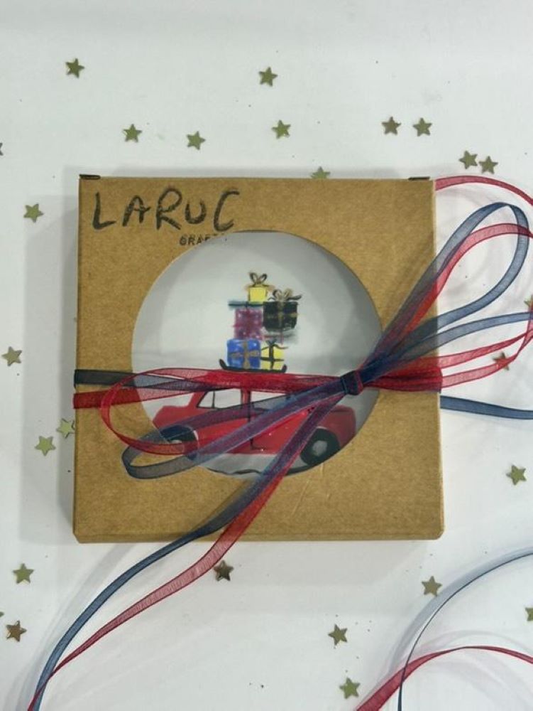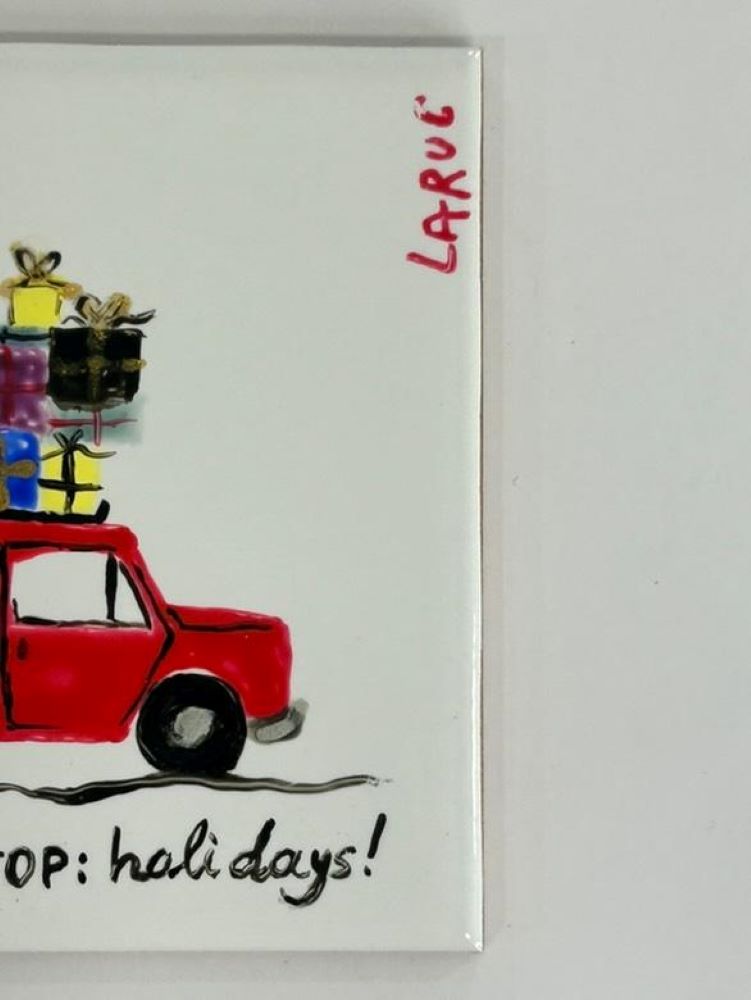 Χειροποίητο πλακάκι ζωγραφισμένο στο χέρι με γιορτινό, ταξιδιάρικο θέμα. Μπορεί να χρησιμοποιηθεί ως σουβέρ ή ως διακοσμητικό τοίχου, προσθέτοντας χαρά και χρώμα στον χώρο.
