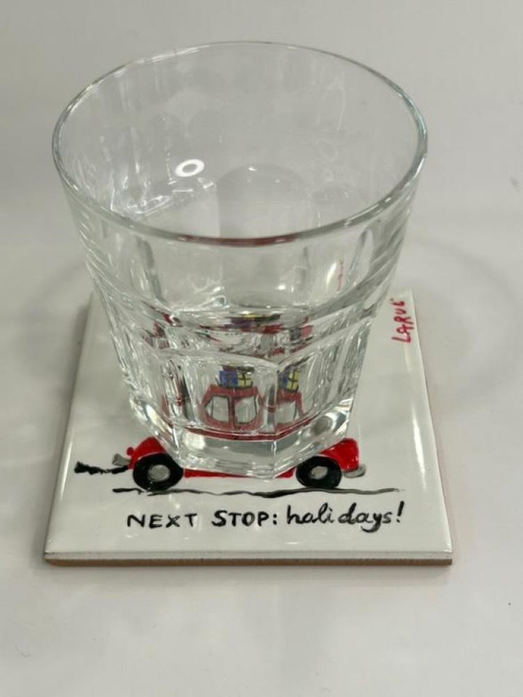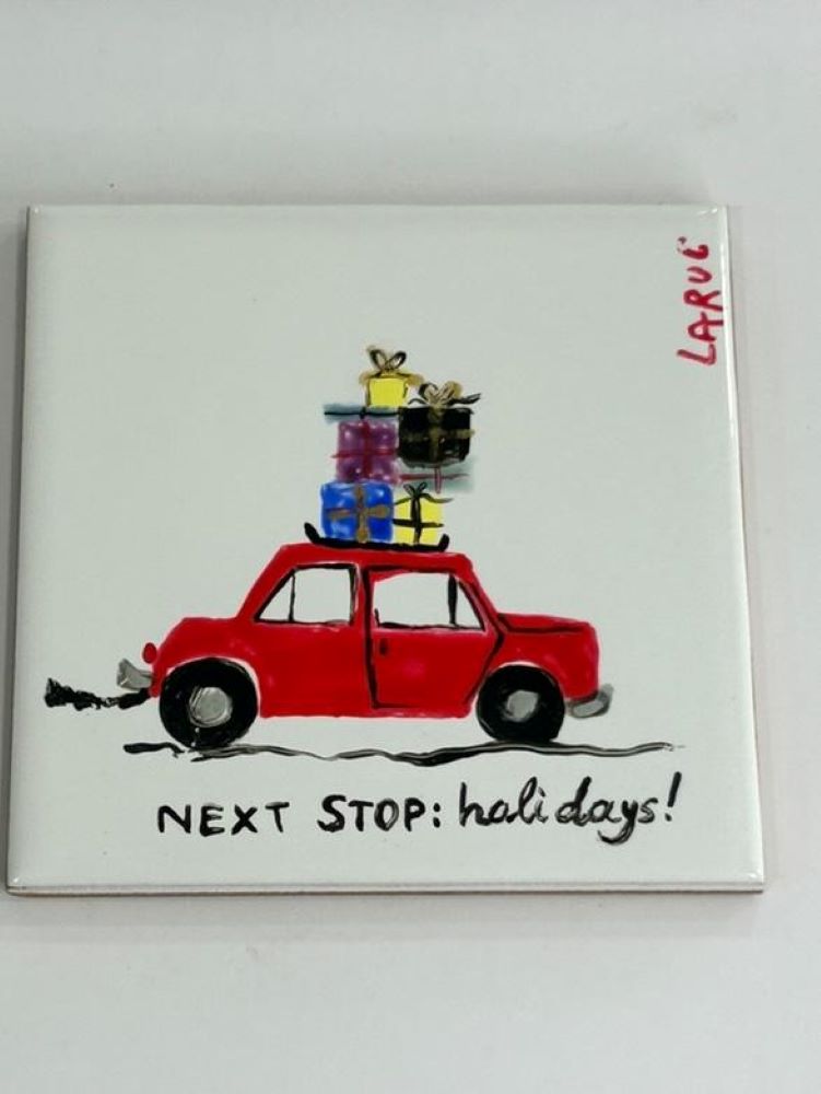 Χειροποίητο Ζωγραφισμένο Πλακάκι «Next Stop: Holidays!» – Σουβέρ & Διακοσμητικό Τοίχου